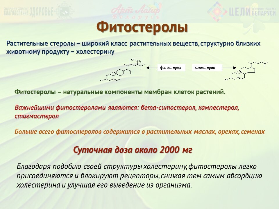 Фитостеролы (или растительные стеролы) – это группа растительных веществ, которые по своей структуре удивительно похожи на холестерин, ключевой компонент клеточных мембран. Они естественным образом содержатся во многих растениях, в том числе в орехах, семенах, растительных маслах, и даже добавляются в некоторые продукты, например, маргарин.